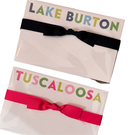 Each pad comes wrapped in plastic with a grosgrain ribbon.