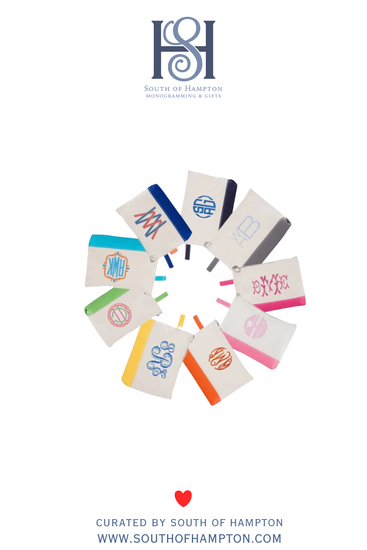 Our personalized canvas zipper pouches are the perfect catch-all for makeup, travel essentials, tech cords, pens, or everyday bag organization. Finished with colorful trim and a custom monogram, they’re equal parts practical and preppy — aka the sweetest thoughtful gift.