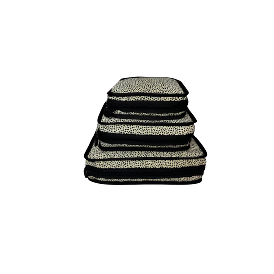 We LOVE these stacking sets! They are the ultimate organization and travel accessory! They will keep your suitcase organized for your grown up weekend away. New parents can keep diapers, wipes, and toys easily accessible in your diaper bag! College girls get ready! They are perfect for clothing items, makeup, brushes, etc! Add your monogram to your set to really make it POP!