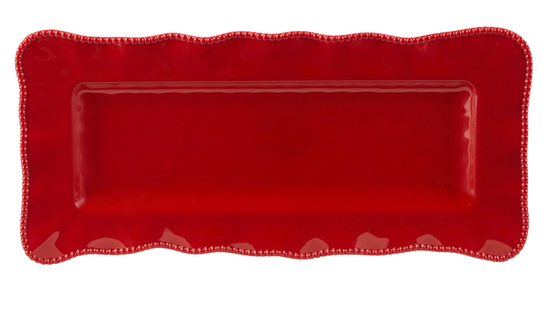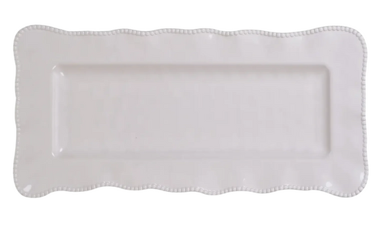 From the renowned "Perlette" collection this rectangular platter with its scalloped edge adds a touch of elegance and differentiates it from plain rectangular platters. The scalloped edges give the platter a more decorative appearance, making it suitable for both casual and formal dining settings.