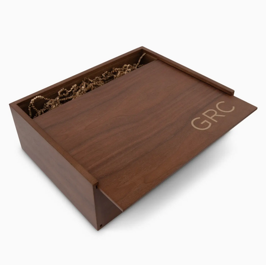 Specifications: Small Gift Box 7" (L) x 5" (W) x 3" (H) 17.78cm (L) x 12.7cm (W) x 7.62cm (H) Large Gift Box 12" (L) x 9" (W) x 4" (H) 30.48cm (L) x 22.86cm (W) x 10.16cm (H) Paper Shred included MDF and Walnut Wood